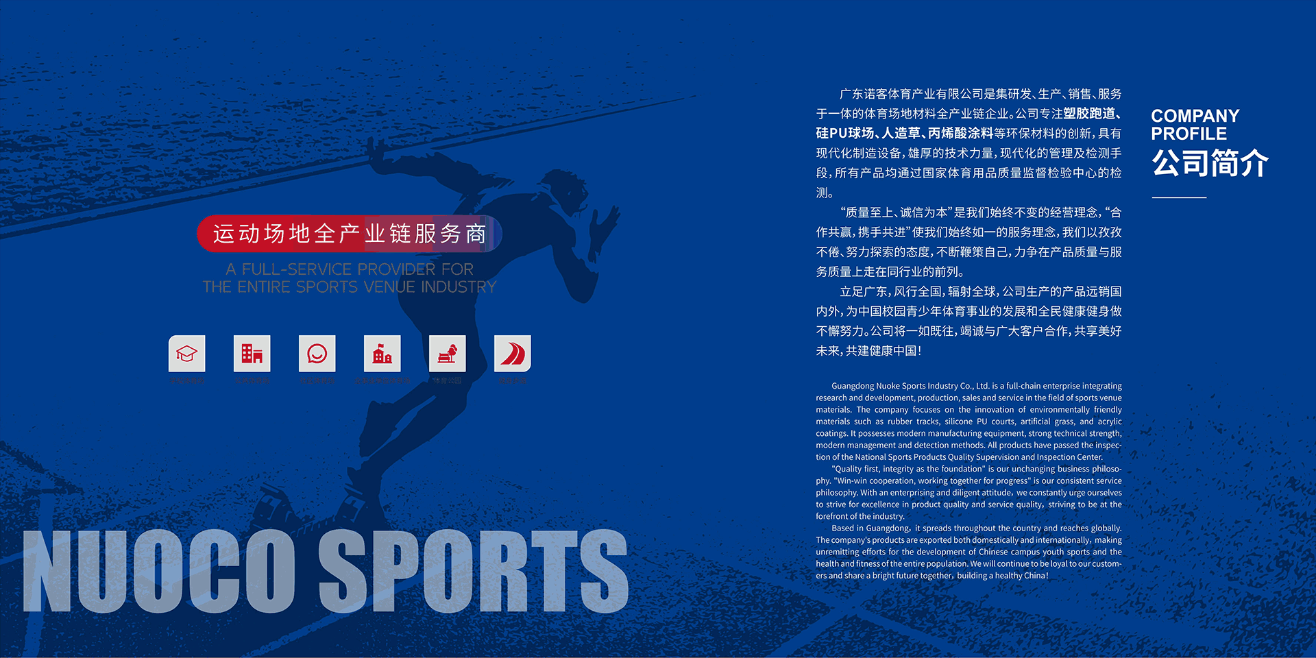 诺客的塑胶跑道品类丰富、弹性好、耐磨 防滑、耐候性强,能有效缓冲减震,保护 运动关节,是专业田径场地的首选面层材 料。